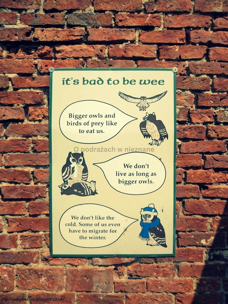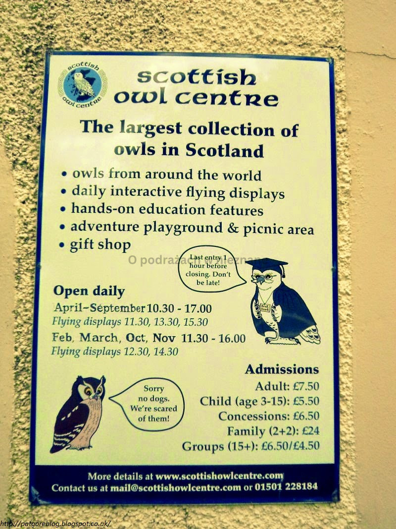 do Scottish Owl Centre (planowane 4 dni przed, ale wypadło coś innego). Co to owl? To sowa z języka angielskiego, czyli do