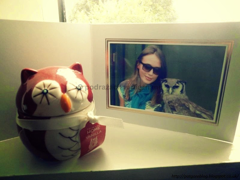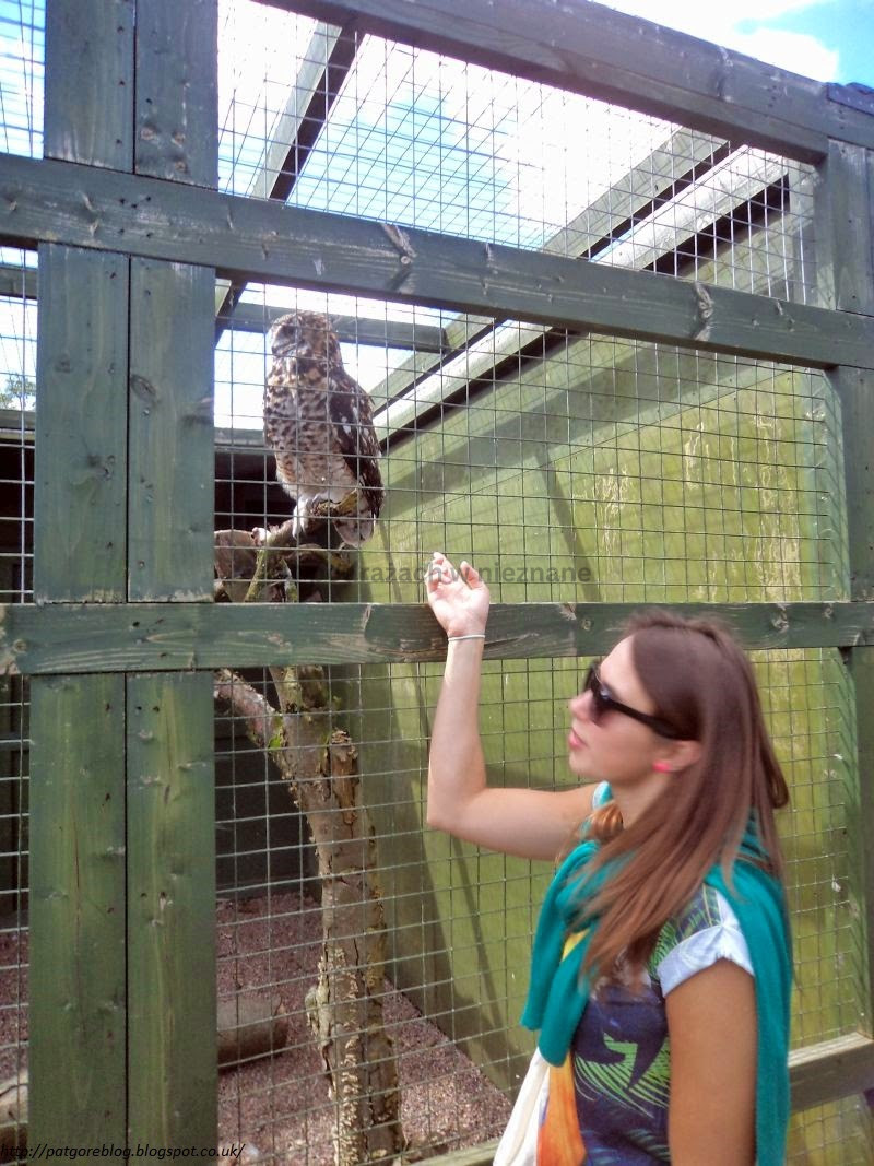 Istnieje możliwość wykonania sobie sobie zdjęcia ze sową. Były dwie do wyboru, mała biała i wieeeeelka szara, ja wybrałam tę większą. Dostawało się na pół ręki ogromną, ochronną rękawicę, po czym Pracownik Centrum kładł sowę na moją rękę i obie patrzyłyśmy w aparat. Była ogromna! Miała przeogromne pazury i łapy, do tego ciężka, ale przepiękna! Jak dałam głowę w jej stronę to ona też się przybliżyła. Niestety nie można było dotknąć, czego bardzo żałuję :/. Ale wspomnienia i pamiątka są! Wykonanie aparatem z Centrum + ramka + wydruk kosztuje £6, natomiast swoim £4. Wybrałam opcję pierwszą.