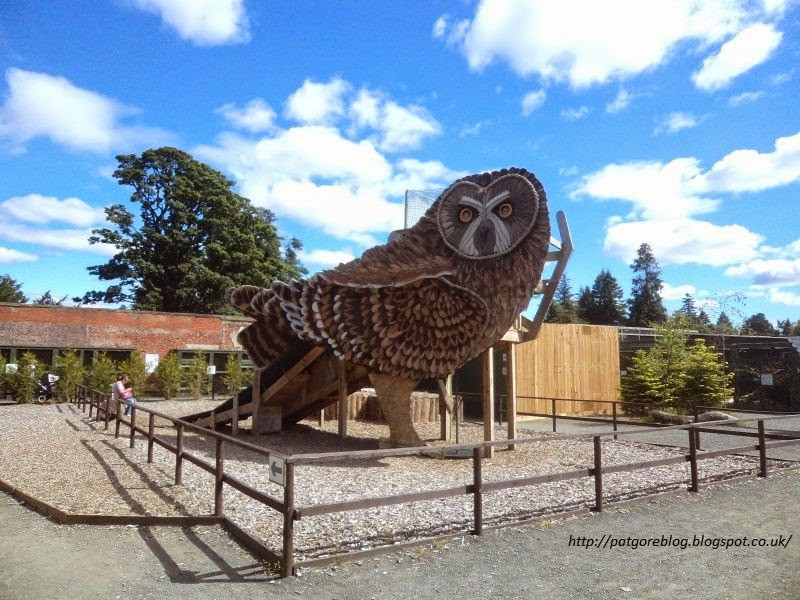 szkockiego centrum sów. Samochodem zajęło nam to około 20 minut. Ale można także podjechać autobusem. Godziny otwarcia sfotografowałam, więc o tym później. Całe szczęście, że pojechaliśmy w ciągu tygodnia (i tak było sporo ludzi jak na poniedziałek), a nie w weekend. Oto moja fotorelacja: