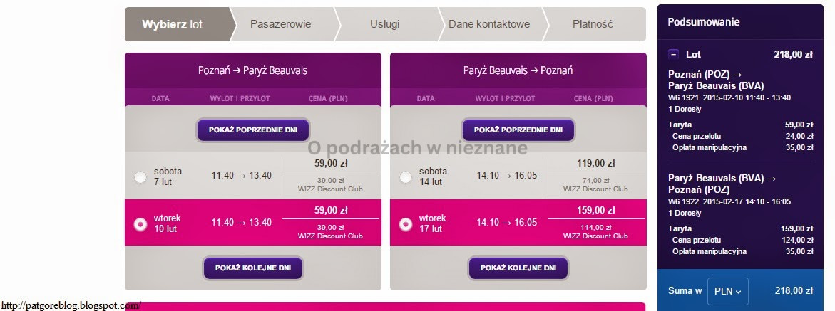 Poznań – Paryż (Beauvais) – Paryż (Beauvais) – Poznań – 218 zł, z kartą Wizzair 153 zł