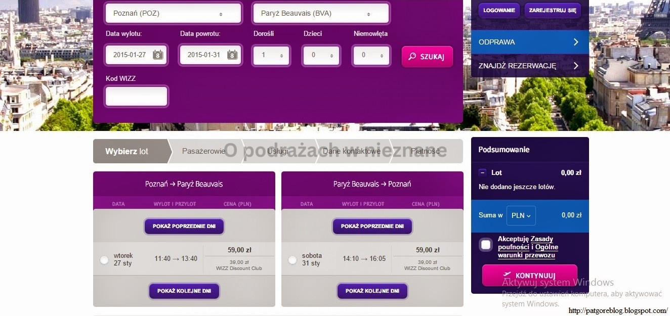 Poznań – Paryż (Beauvais) – Paryż (Beauvais) – Poznań – 118 zł, z kartą Wizzair 78 zł w 2 strony! 13 stycznia – 17 stycznia