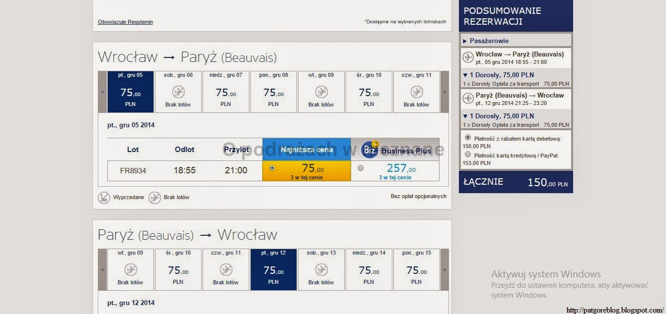 Wrocław – Paryż (Beauvais) | Paryż (Beauvais) – Wrocław – 150 zł 5 grudnia – 12 grudnia 2014