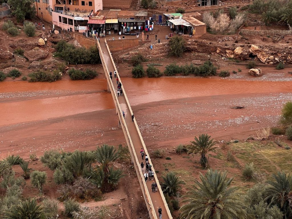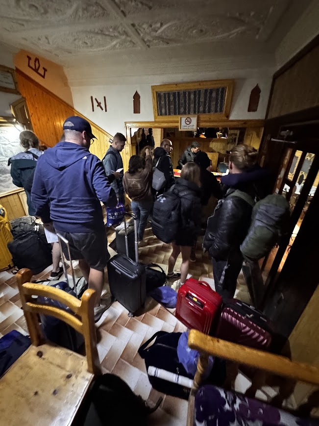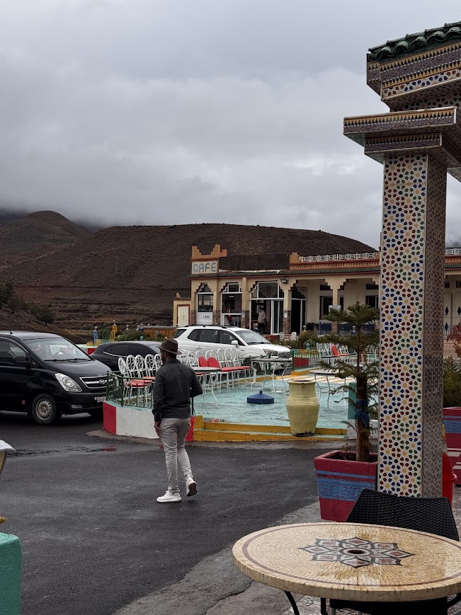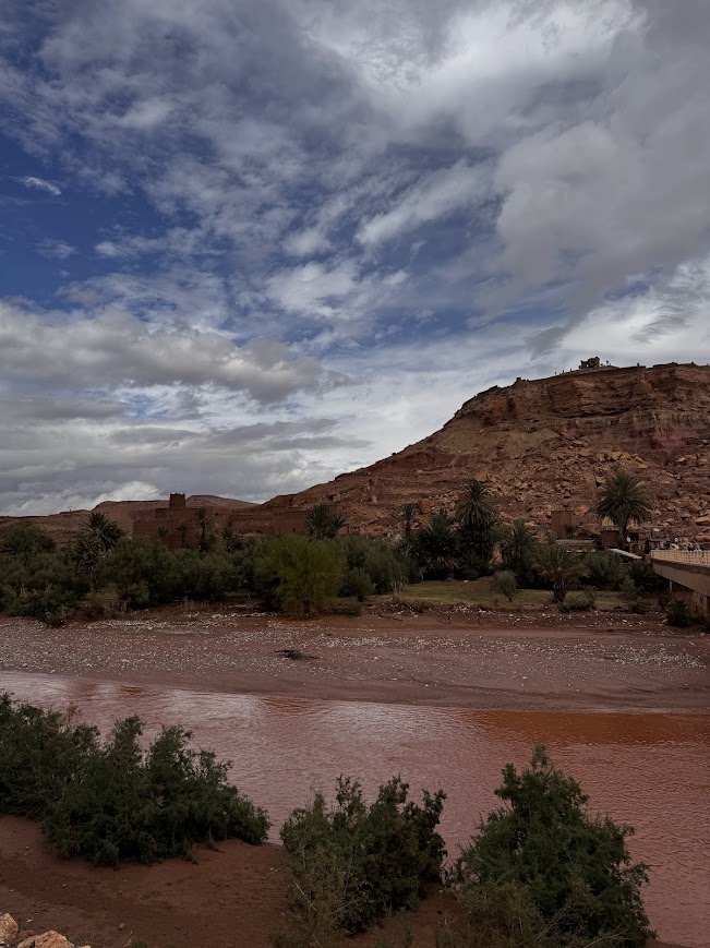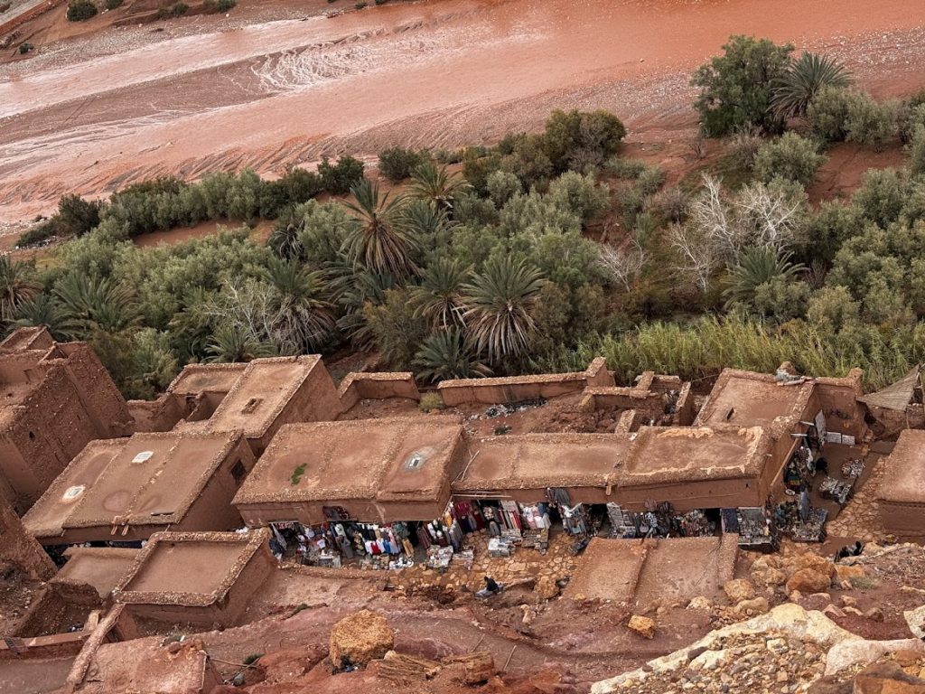 Po zwiedzaniu Ajt Bin Haddu, ruszyliśmy w stronę hotelu, ale jak to bywa w podróży, przygody zaczęły się nieoczekiwanie. Góry Atlas postanowiły się “rozpłakać”, a ich ulewy sprawiły, że droga stała się nieprzejezdna z powodu powodzi. W tym momencie, jedyne, co wiedzieliśmy, to że nasz kierowca rozmawiał o czymś intensywnie po arabsku, a my zostaliśmy uspokajani jednym, niezwykle popularnym hasłem: „Jeszcze 5 minut”. I wiecie co? „5 minut” w Afryce to jak obietnica, że dotrzemy za kilka godzin, bo czas płynie tam trochę inaczej. Atmosfera w busie była trochę napięta, a jednocześnie spokojna, wszyscy wiedzieliśmy, że to właśnie te nieplanowane momenty tworzą najciekawsze wspomnienia z podróży!