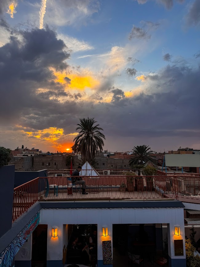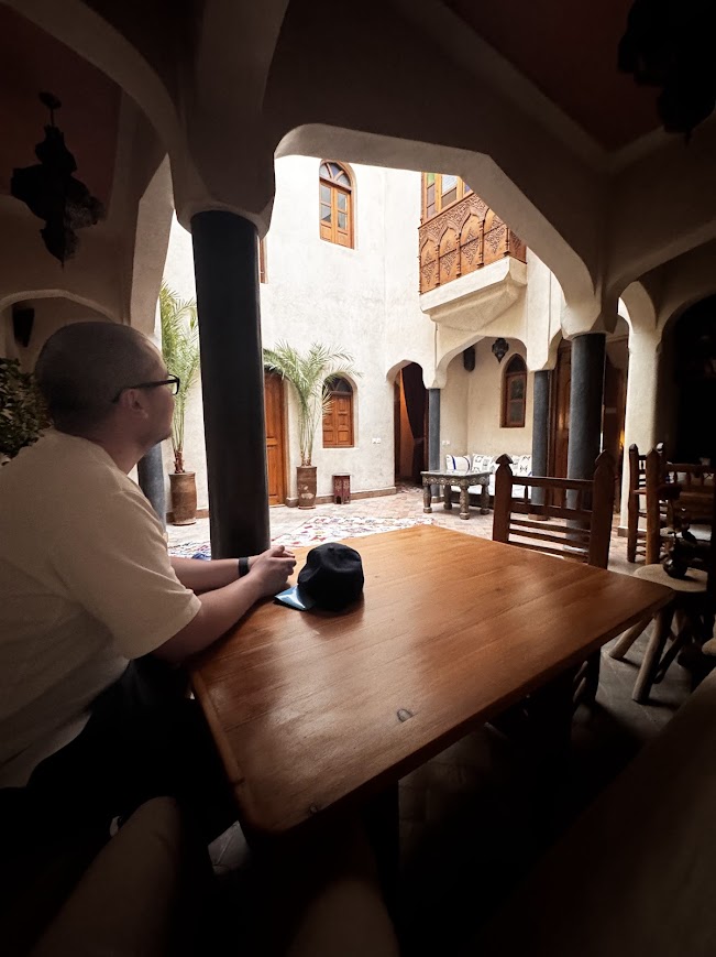 W Marrakeszu zatrzymaliśmy się w riadzie – tradycyjnym marokańskim domu, który okazał się być prawdziwą perełką. Jeśli chcecie poczuć się jak w baśni o Alladynie, to Riad Sabah będzie idealnym wyborem! Link do riadu: Riad Sahab. Po przekroczeniu drzwi tego miejsca, poczuliśmy się jakbyśmy przenieśli się do magicznego świata pełnego kolorów, zapachów i tajemniczych zakątków. A potem… powitano nas tradycyjną marokańską herbatą! 🍵 Przygotowaną na sposób, który sprawia, że nawet zwykła filiżanka staje się rytuałem – z miętą, cukrem i taką dawką serdeczności, że aż zapomnieliśmy o świecie na zewnątrz. Co chwilę miałam wrażenie, że zaraz zza rogu wyskoczy dżin z lampy! Każdy detal w tym riadzie sprawiał, że czuliśmy się jak prawdziwi bohaterowie baśni, a atmosfera tego miejsca oszołomiła nas do ostatniej chwili!