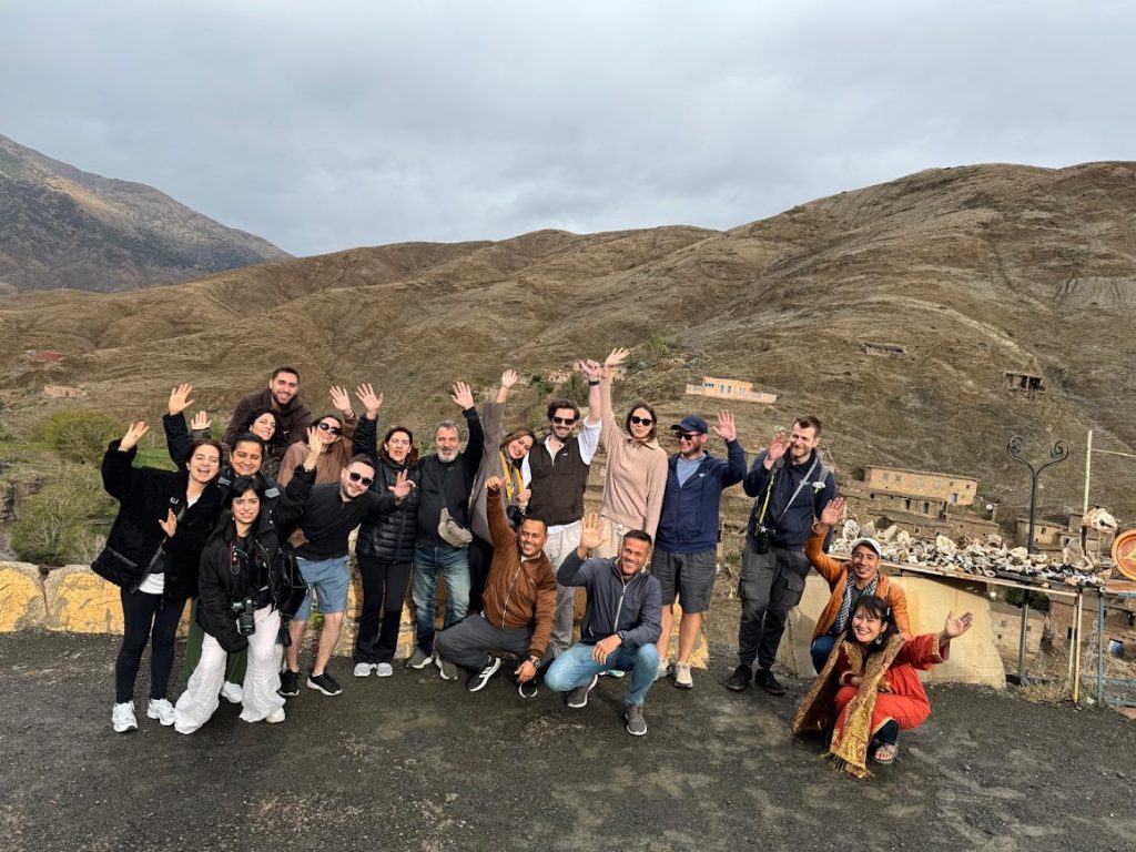 Następnego dnia musieliśmy opuścić naszą bajkową oazę i ruszyć na przygodę, która… rozbudzała wyobraźnię! Było jak wkraczanie do innej rzeczywistości – poranek powitał nas promieniami słońca, które malowały Maroko w najpiękniejszych kolorach, a my wiedzieliśmy, że to dopiero początek prawdziwej eksplozji emocji. Przed nami leżała droga pełna tajemnic, a każdy kilometr wciągał nas w wir przygód. Przedsmak tego, co miało się wydarzyć, był nieziemski! Gdy wsiadaliśmy do mini busika, nie mieliśmy pojęcia, że ta podróż rozwinie naszą wyobraźnię i nie tylko… Busik wypełnił się po brzegi – ludzie wchodzili, wchodzili, aż po 30 minutach byliśmy gotowi, by wreszcie ruszyć w głąb kraju! Cały świat, dosłownie, zmierzał w jednym kierunku – wszyscy jechali zobaczyć Saharę. Zoabczcie poniżej z jakim towarzystwem spędziliśmy te 3 piękne dni!