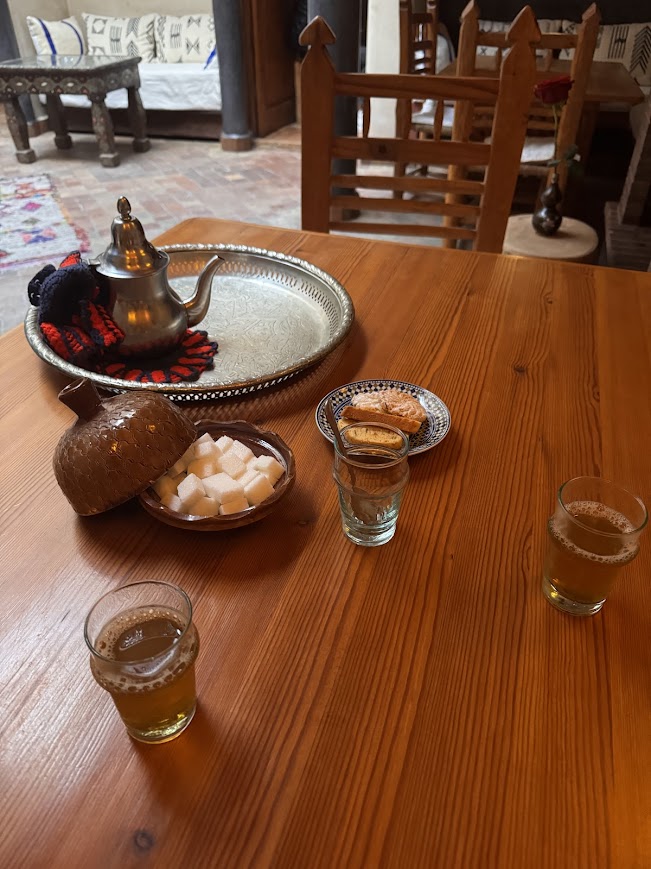 Przywitanie nas marokańską herbatą dodało jeszcze więcej uroku temu miejscu. To tradycyjne powitanie nie tylko wprowadziło nas w klimat, ale także sprawiło, że poczuliśmy się naprawdę mile widziani.
